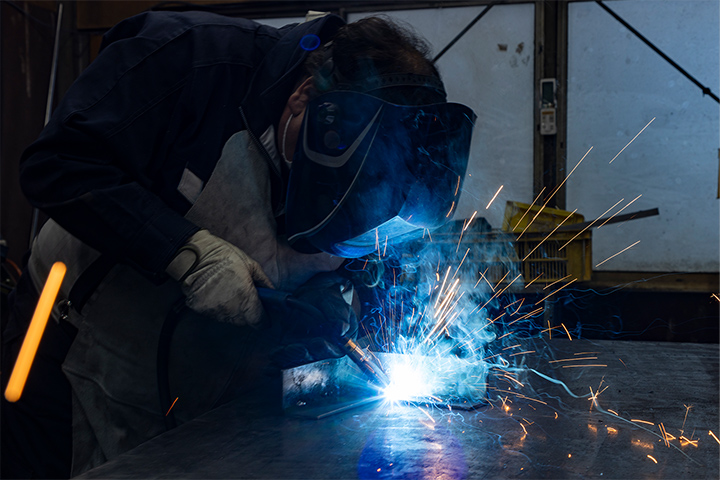 各種加工を行った部品同士を結合する溶接作業は、一般的な半自動溶接機を用いた加工から、アルミのスポット溶接まで対応可能です。鉄、ステンレス、アルミの他、銅や真鍮などの鋼材も加工できます。さらに協力工場と連携することで、その他の仕上げ加工なども承ることができますので、お気軽にご相談ください。